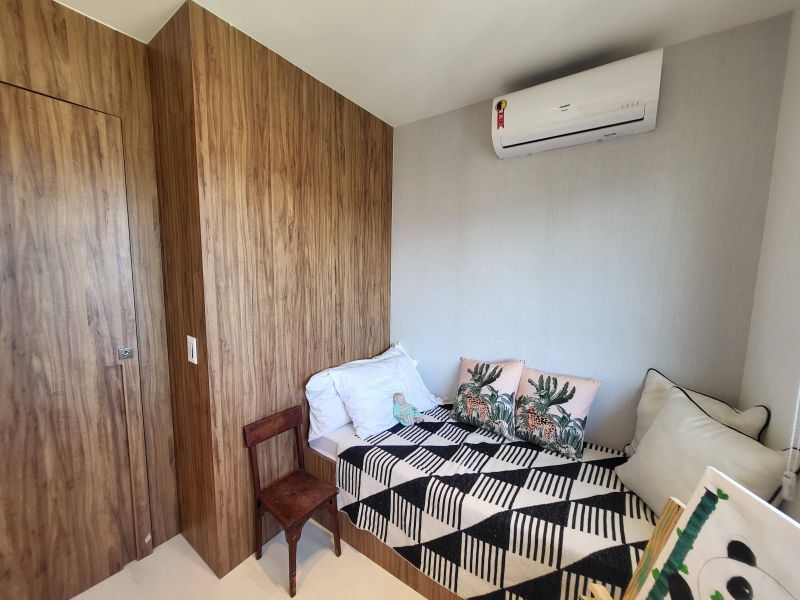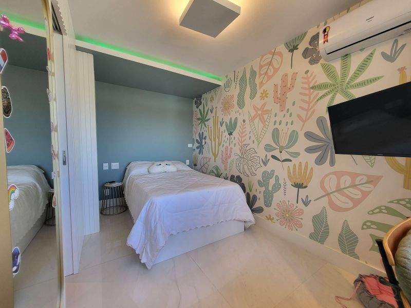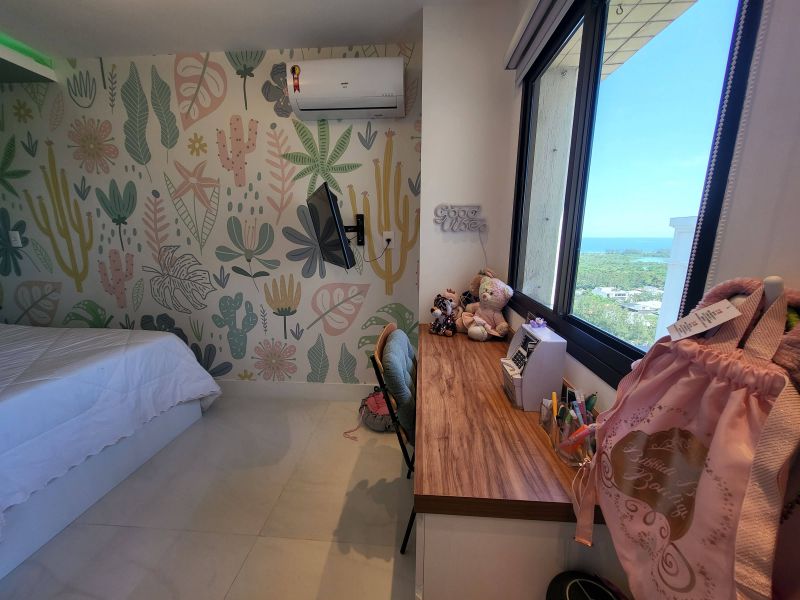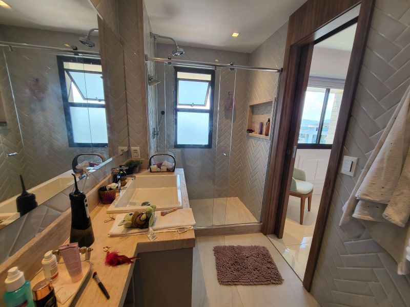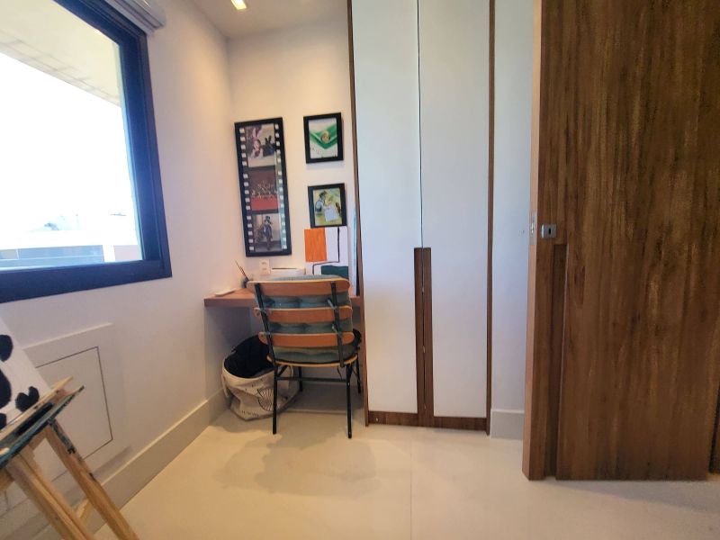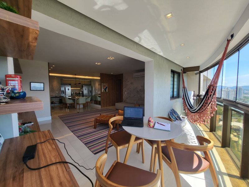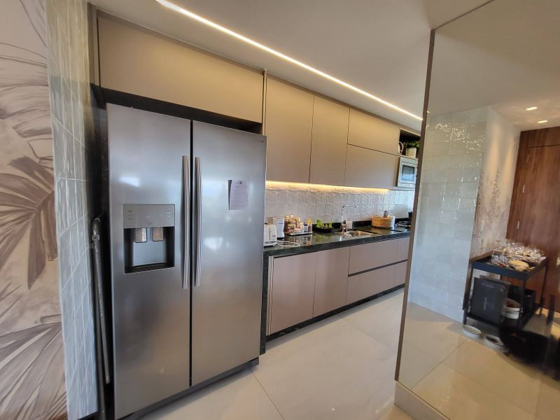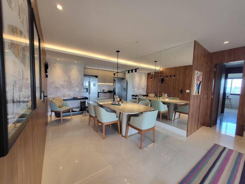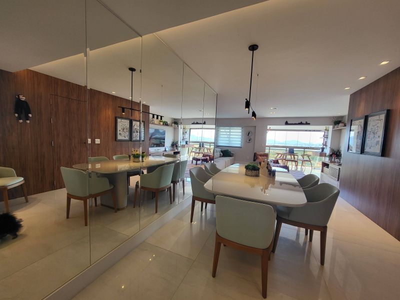 O imóvel apresenta um design moderno e sofisticado, fica em um andar alto e possui uma bela vista livre, além de muito aconchegante vem totalmente mobiliado e decorado por arquiteto, possui varanda fechada com cortina de vidro integrada com ampla sala de estar e jantar, três quartos, sendo dois deles suítes, além de cozinha totalmente equipada, área de serviço e duas vagas de garagem. Todos os quartos estão equipados com ar condicionado split e armários planejados de boa qualidade, perfeito para quem valoriza qualidade, conforto e conveniência.