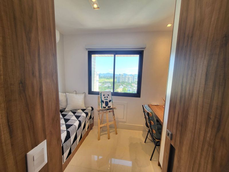 Este extraordinário apartamento, recentemente reformado e mobiliado, conta com uma ampla sala de estar e jantar integrada, 3 quartos, sendo 2 suítes, 115m², no condomínio Mundo Novo na Barra da Tijuca
