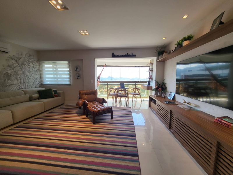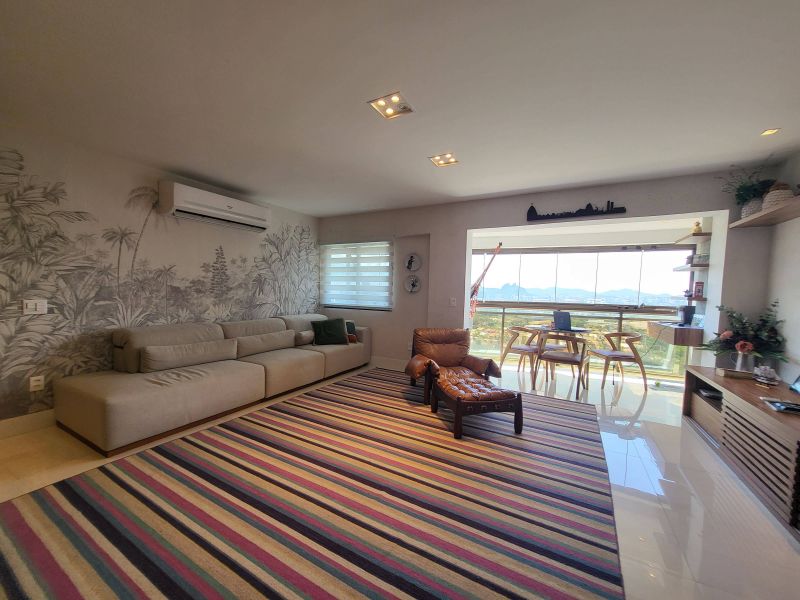 Apartamento mobiliado com varanda integrada a ampla sala de estar e jantar, 3 quartos, sendo 2 suítes, 3 banheiros, 115m², na Barra da Tijuca